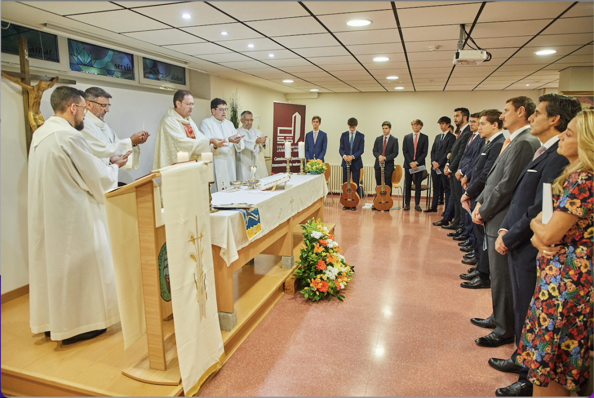 Comenzó el acto con una eucaristía presidida por el padre provincial, Adolfo Lamata, y concelebrada por los misioneros Basilio Álvarez, Antonio Sánchez Orantos, José Manuel Sueiro y Jorge Ruiz Aragoneses, todos ellos miembros de la comunidad claretiana de los colegios mayores de la sección Jaime del Amo. Los preparativos de esta misa, cuidados con mimo por nuestro pastoralista Rubén Francisco Moro, dieron como resultado una entrañable celebración participada por un gran número de colegiales y antiguos colegiales. Seguidamente pasó a celebrarse el acto académico en el salón Gregorio del Amo, donde se dio lectura a la memoria de las actividades desarrolladas durante el curso anterior y se proclamó oficialmente la constitución del Consejo Colegial.