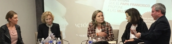 Hablar de feminismo es hablar de muchas cosas. A veces pueden parecer dispares y otras veces, contradictorias. Por ello, Fernando Prado, Director Editorial de Publicaciones Claretianas, comenzó tomando la primera palabra en el encuentro que se ofreció ayer en Madrid con cuatro mujeres de las más relevantes en la Iglesia de nuestro país. “De nosotros no se puede esperar un feminismo que no se ajuste a la verdad del Evangelio”. De esta manera se dispuso el marco y se abrió un espacio para ahondar en una idea que la sociedad ya lleva tiempo reclamando de los creyentes: ¿qué piensa hoy la Iglesia del feminismo? El libro ‘Diez cosas que el Papa Francisco propone a las mujeres’, escrito por María Teresa Compte Grau, profesora de Doctrina Social de la Iglesia en la Universidad Pontificia de Salamanca –Campus Madrid– y prologado por el Papa Francisco, fue más que nada un pretexto. “Ojalá este libro no sea más que un primer pasito; ojalá se abran posibilidades de ofrecer otras muchas más cosas a favor del feminismo y de la igualdad”, intervino la autora. Desde luego que la tarde de ayer, en la Fundación Pablo VI, supo a mucho y por varias razones. Un certero análisis de la realidad, multitud de propuestas para distintos casos y la calidad de las mujeres que tomaron parte en la mesa redonda: Miriam Cortés Diéguez, Rectora Universidad Pontificia de Salamanca; Natalia Peiró Pérez, Secretaria General de Cáritas y Clara Pardo Gil, Presidenta de Manos Unidas, junto a la autora del libro.